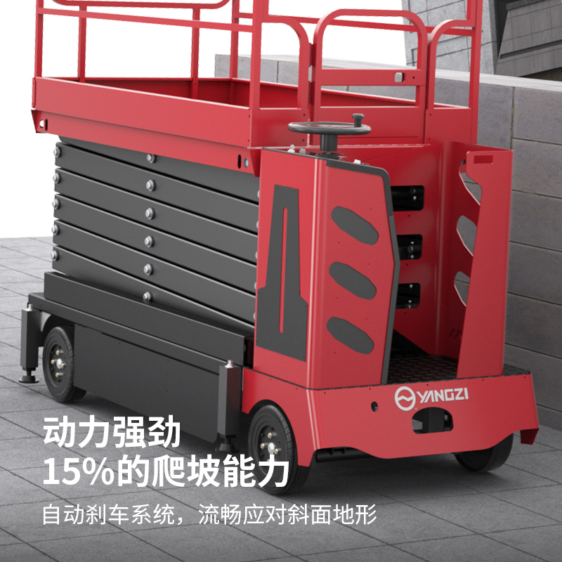 揚(yáng)子站駕式升降平臺(tái)SJZ :全新安全設(shè)計(jì),高強(qiáng)度材質(zhì),精工細(xì)節(jié),站駕控制,動(dòng)力強(qiáng)勁,可拆卸護(hù)欄,用戶可自行控制車輛的移動(dòng)、平臺(tái)的升降在高空獨(dú)自實(shí)現(xiàn)連續(xù)操作。