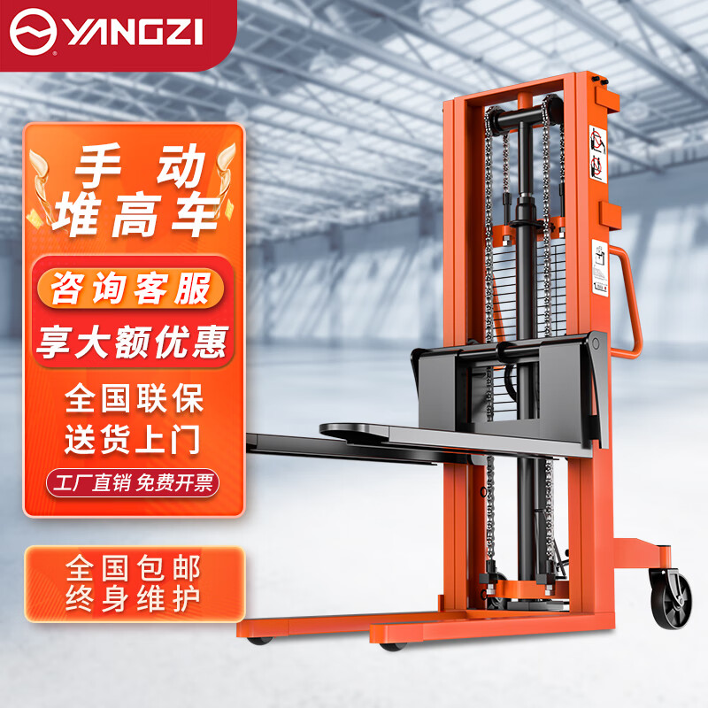 揚(yáng)子手動液壓堆高車SDD:揚(yáng)子手動液壓堆高車經(jīng)濟(jì)實(shí)惠,新手不加價(jià),配置好不講究,手動液壓堆高方便省力省時(shí)。
