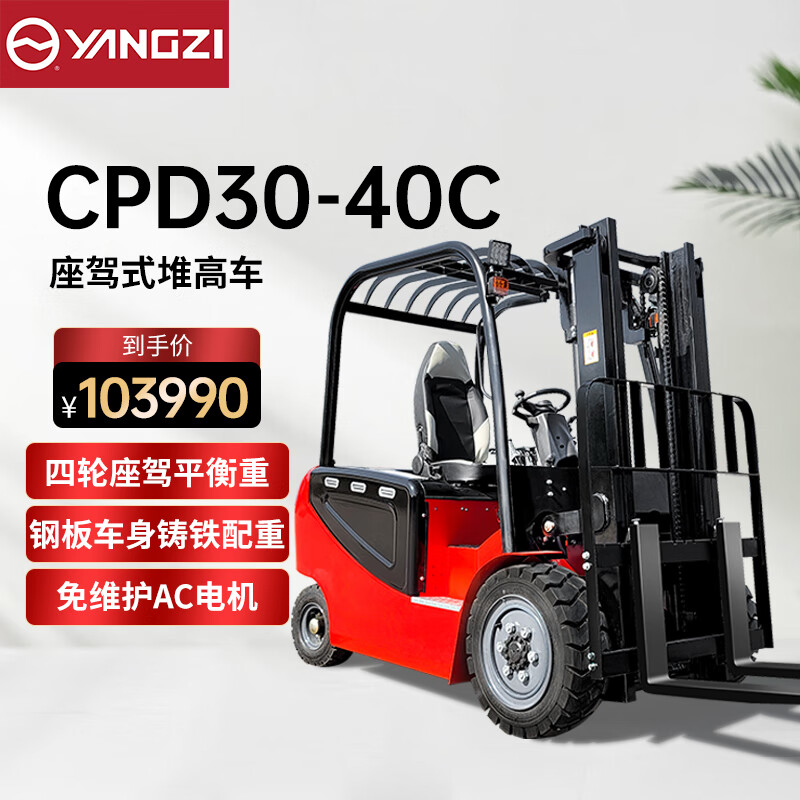 揚(yáng)子電動(dòng)叉車(chē)CPD30-40C 四輪座駕式叉車(chē)3噸升高4米,采用汽車(chē)操控方式,多功能顯示屏,鋼板車(chē)身