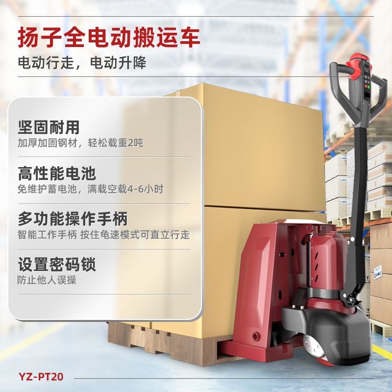 揚(yáng)子PTL電動(dòng)搬運(yùn)車(chē):電動(dòng)省時(shí)省力,多功能密碼手柄設(shè)計(jì),雙電機(jī)驅(qū)動(dòng),超厚鈑金件,人體功效學(xué)手柄設(shè)計(jì),超長(zhǎng)續(xù)航6-8小時(shí),增壓減壓,省力操作。一鍵啟動(dòng)腳踏泄壓